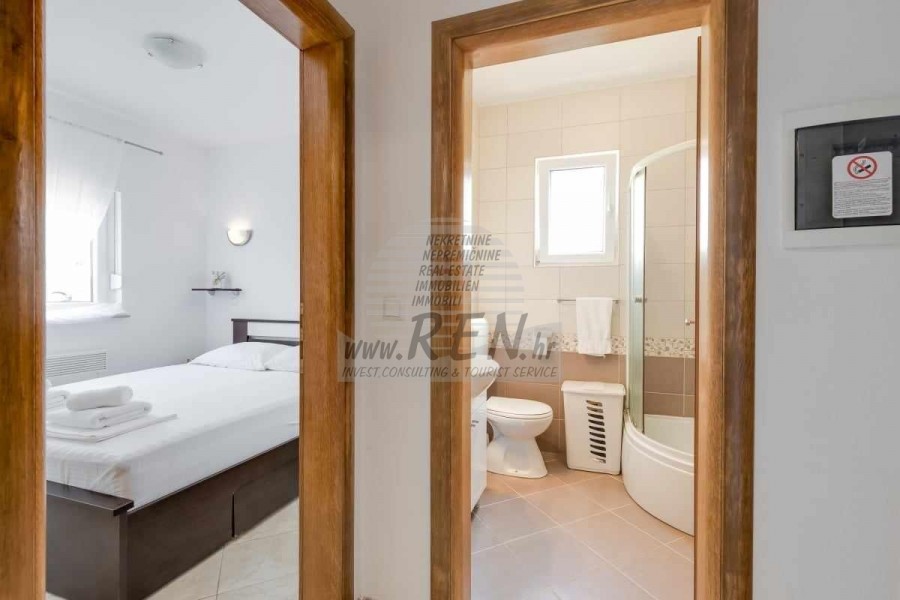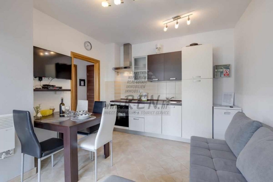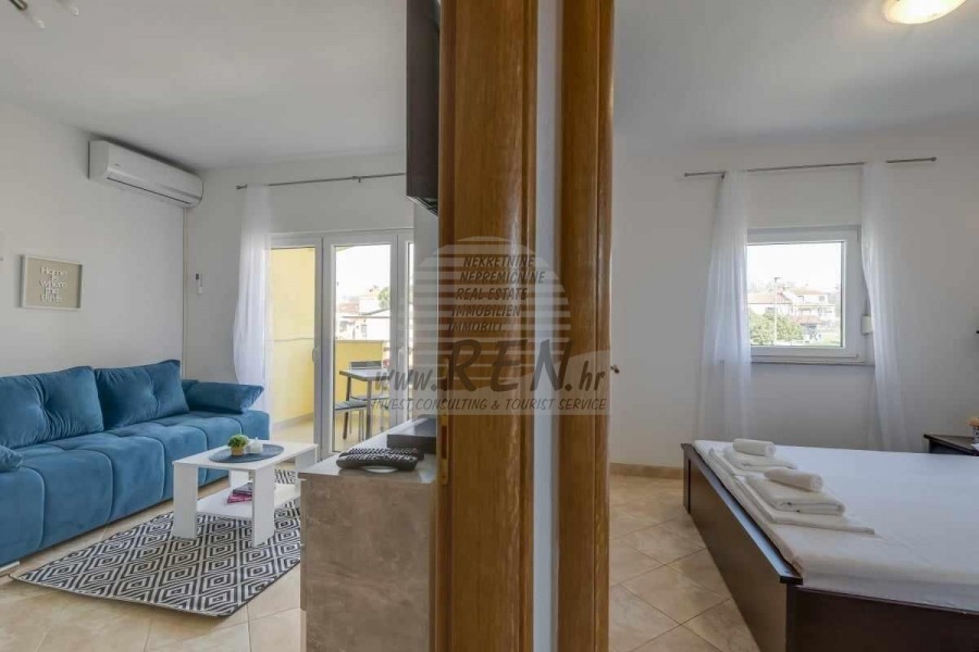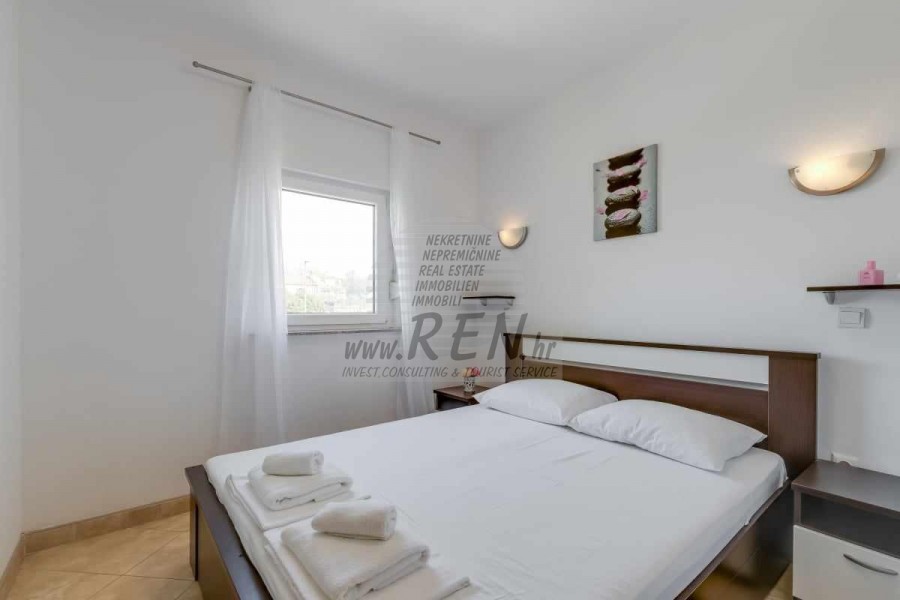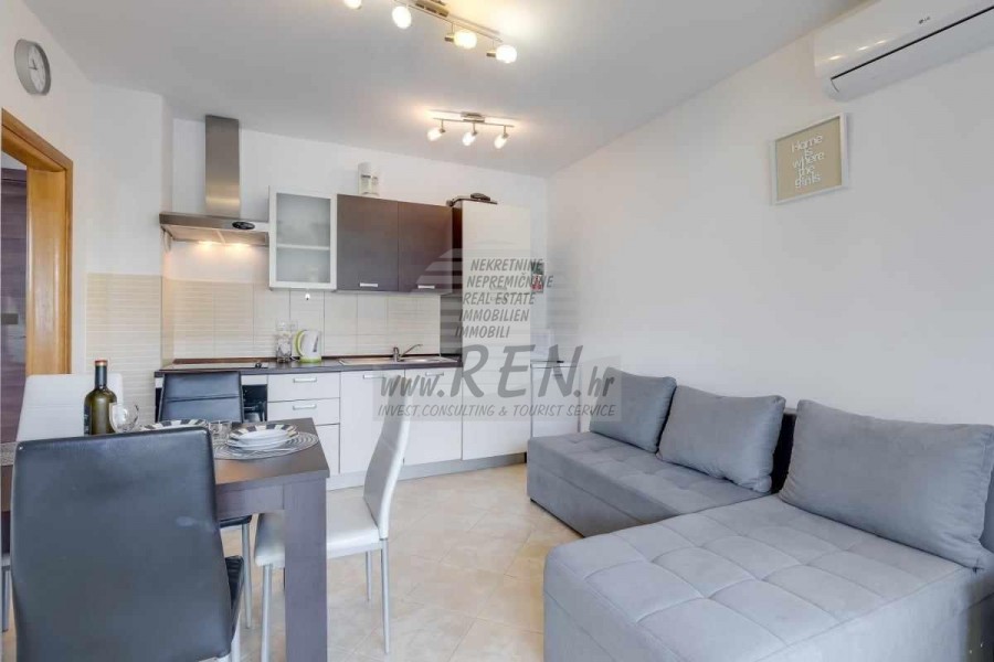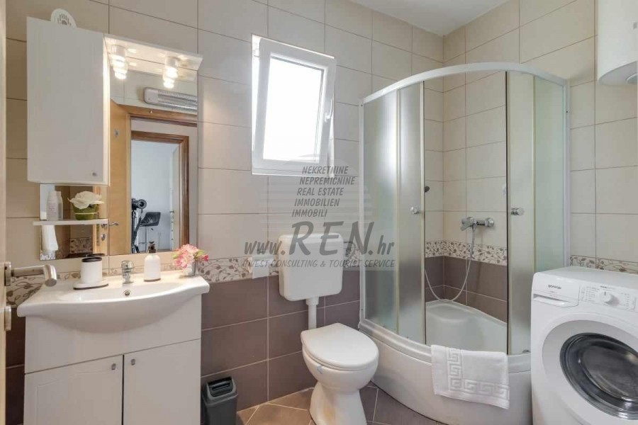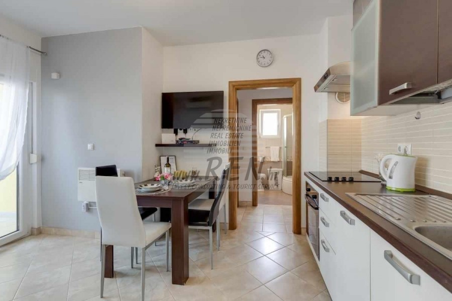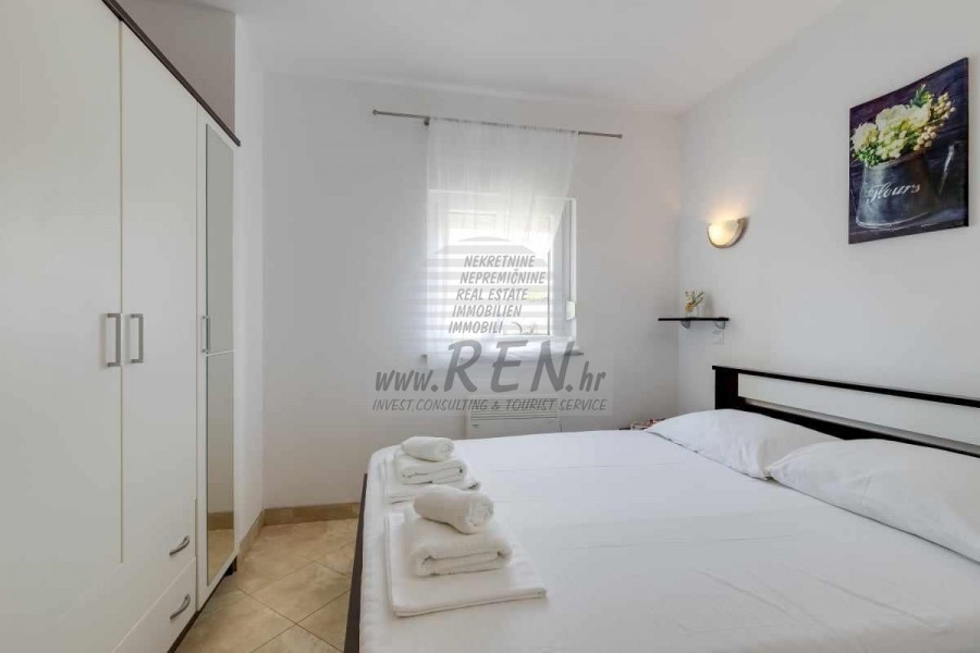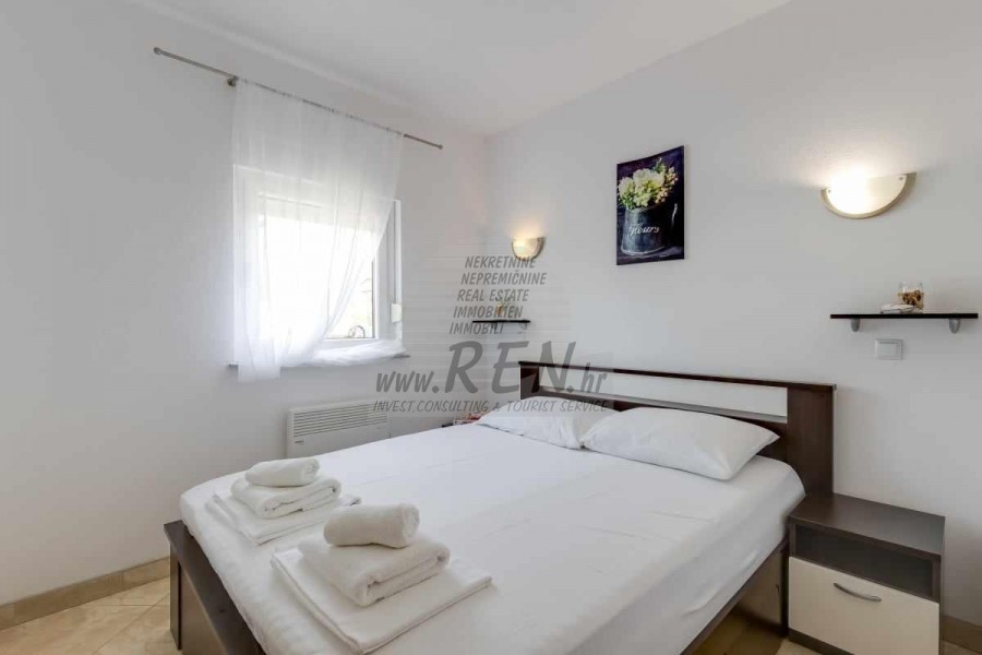 Una casa bifamiliare nelle vicinanze di Cittanova ha un totale di 65 m2, dispone di 2 appartamenti completamente arredati pronti per l'affitto (uno al piano terra, l'altro al primo piano) è stata costruita nel 2013, è a 5 minuti (700m) dal mare e dalla spiaggia, 10 min. (5000m) dal centro di Cittanova. Si compone di 2 cucine/soggiorno con sala da pranzo, 2 bagni, 2 camere da letto, 2 terrazzi. E' dotato di aria condizionata, con mobili, parcheggio proprio.